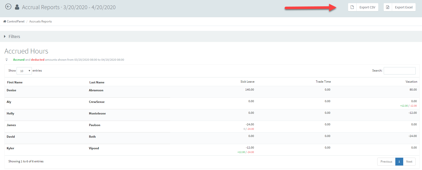 Within the scheduling platform, pulling an Accrual Report is just as simple as pulling other reports.