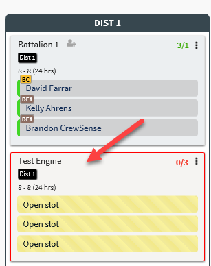 You'll want to fill out all of the fields. In this case, we've named our assignment 'Test Engine'; Given it a start date, a start and end time (in this case, this assignment is round the clock - 24 hours), and indicated the minimum staffing for this assignment should be 3 people. There are various options as well, which you can hover over the blue (?) to see what those mean exactly. We set it to repeat every day since this is a 24/7 assignment. You can do other options here as well, like setting the background color of the assignment, and more. Lastly, be sure to click the green Save button.