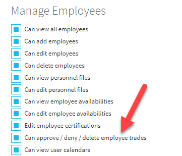 Trades can be added into the system by any user who has the permission to 'Can approve/deny/delete employee trades'