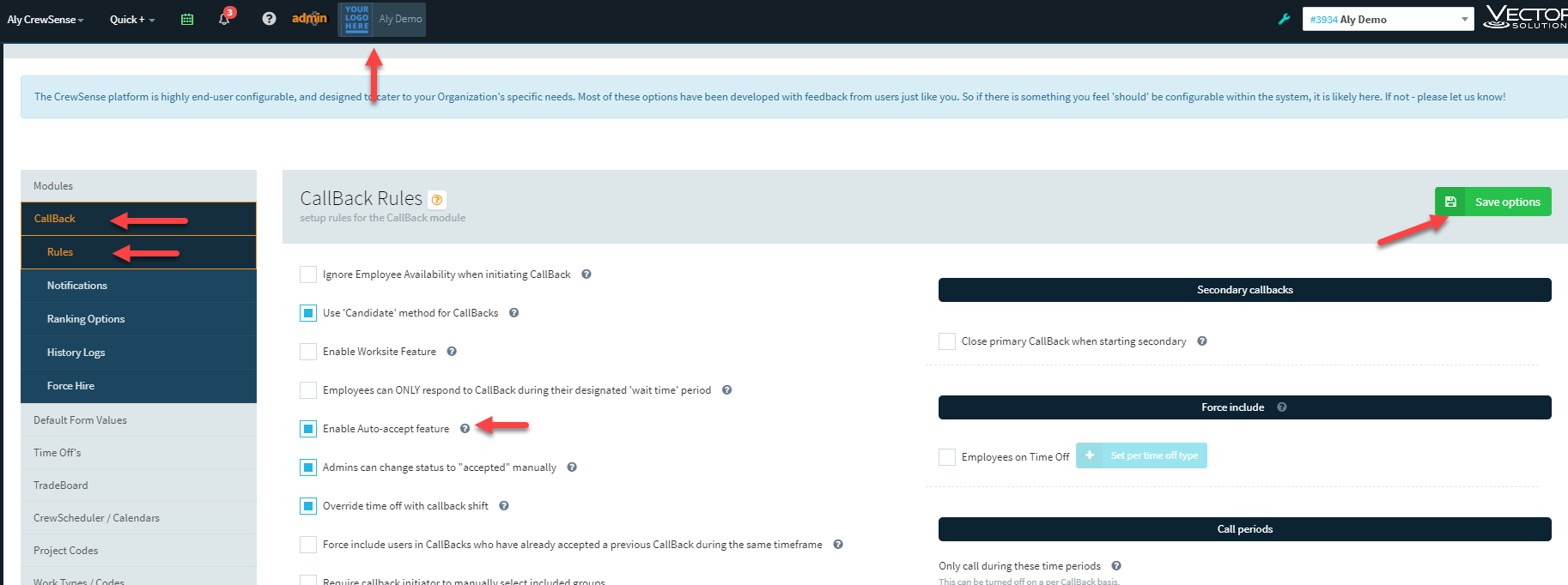 WARNING: By enabling the auto accept period, you are obligated to work any period that is accepted on your behalf. There is no canceling an auto-enabled CallBack. So it is advised to use this feature very carefully.