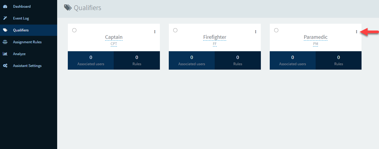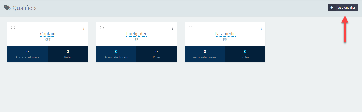 Now you will notice the qualifier appear in the Qualifiers screen. You'll want to now add employees who are eligible to work this Qualifier. Do this by clicking the three dots next to the Qualifier name.