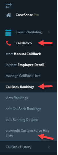 Once enabled; navigate to the main menu and click CallBack's > Callback Rankings > view/edit Custom Force Hire Lists
