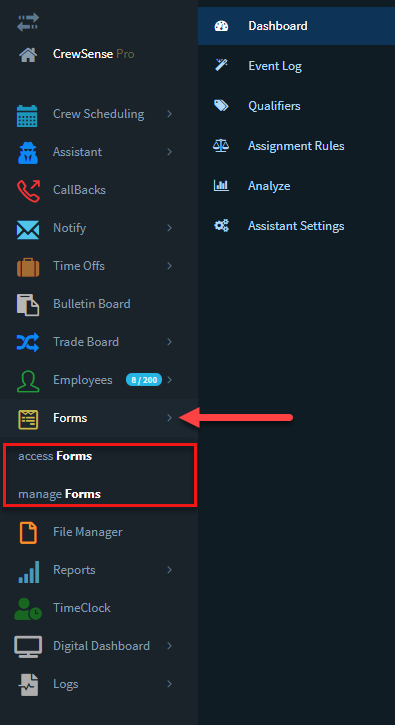 To access the Forms module, simply click Forms.