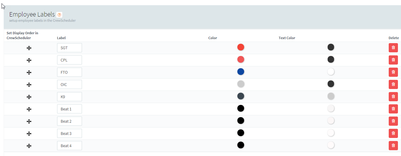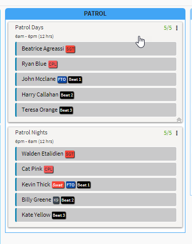 The idea is to create a view that works best for your department. It's the beauty of the system. Create labels as needed. (Tip: use labels to assign patrol beats or zones, as they often change day to day.) Play with your daily view setup. What is great about the scheduling platform is how visually appealing our product is. We created it because most users are visual-- they want to see where the staffing deficiencies are from the moment they open up the program.