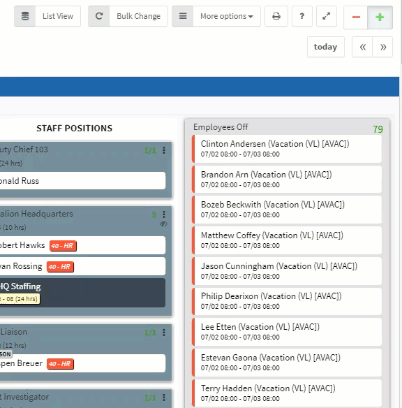 If you want to place employees off duty for an extended period of time, it is easiest to do this using a recurring time off entry. You do not want to just place the employee with a time off entry of Jan 1 - Jan 30....since that would be hundreds of hours long!