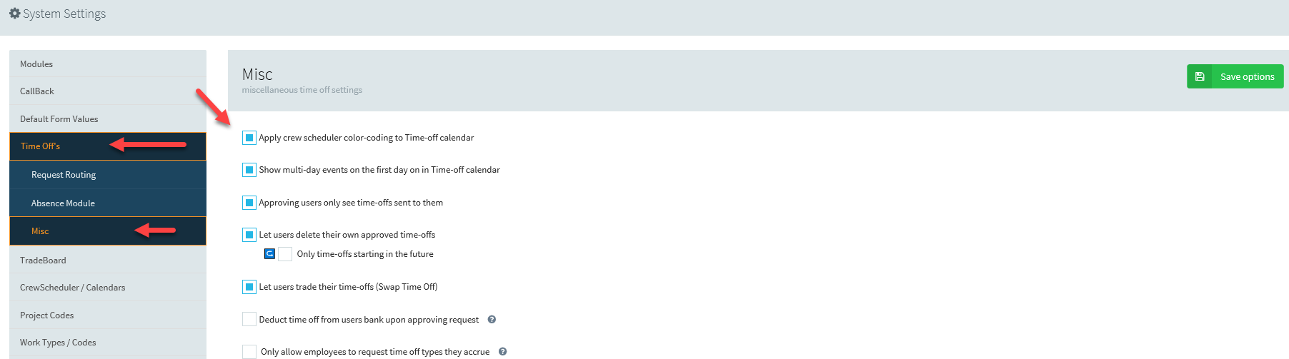 Note: In order to access the Time Off Requests page, the Time Off Routing/Accruals module must be enabled in System Settings > Modules: The scheduling system has an advanced Time off / Request module built in. This allows employees to submit time off ...