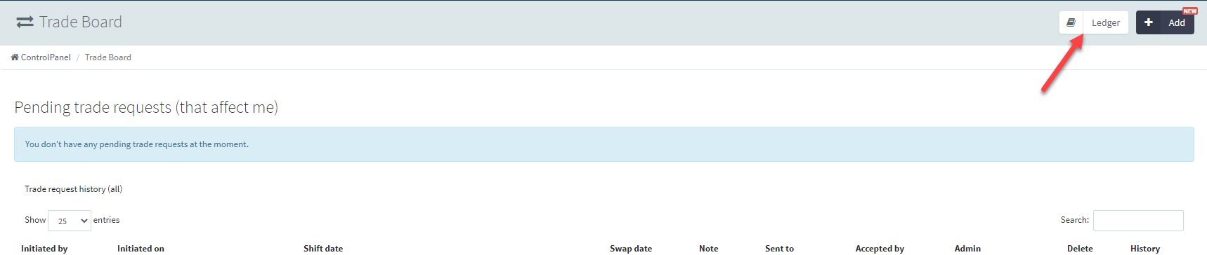 Either of those will take you to the Trade Ledger.